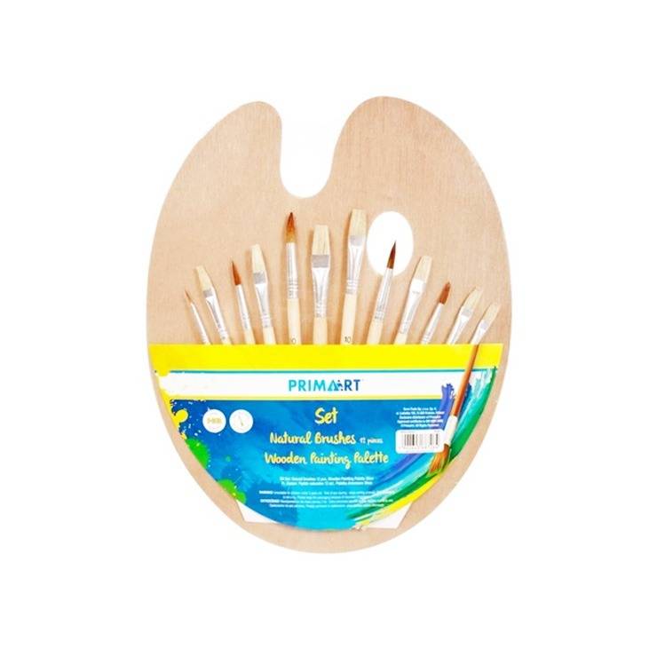 Drevená paleta so štetcami je skvelým nástrojom pre maliarov a umelcov. Tieto palety sú zvyčajne vyrobené z dreva, často z brezy alebo bukového dreva.Drevené palety so štetcami sa často predávajú ako súpravy, kde je paleta kombinovaná so sadou rôznych štetcov rôznych veľkostí a tvarov. Tieto súpravy sú praktické a uľahčujú maliarom mať všetko potrebné na jednom mieste. Paleta s veľkou, pohodlnou rukoväťou a sada štetcov rôznych hrúbok. Na palete je 12 rôznych drevených štetcov. Sada je vyrobená z dreva. Výrobok je určený pre deti vo veku od 3 rokov. Balené vo fólii. Rozmery produktu [cm] 29x24x1.