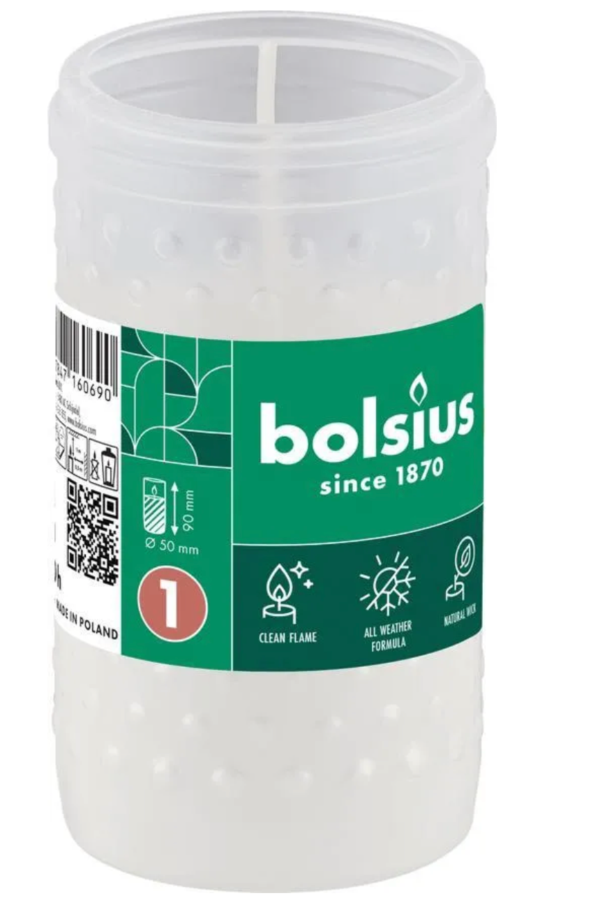 Klasická biela parafínová náplň do kahanca Bolsiusu Gravelight je spoľahlivým zdrojom svetla. Jej plameň horí rovnomerne aj pri vlhkom počasí a mraze. Nádoba na kartuše je vyrobená z kvalitného materiálu, ktorý zabraňuje vytekaniu vosku. Doba horenia je až 20 hodín.