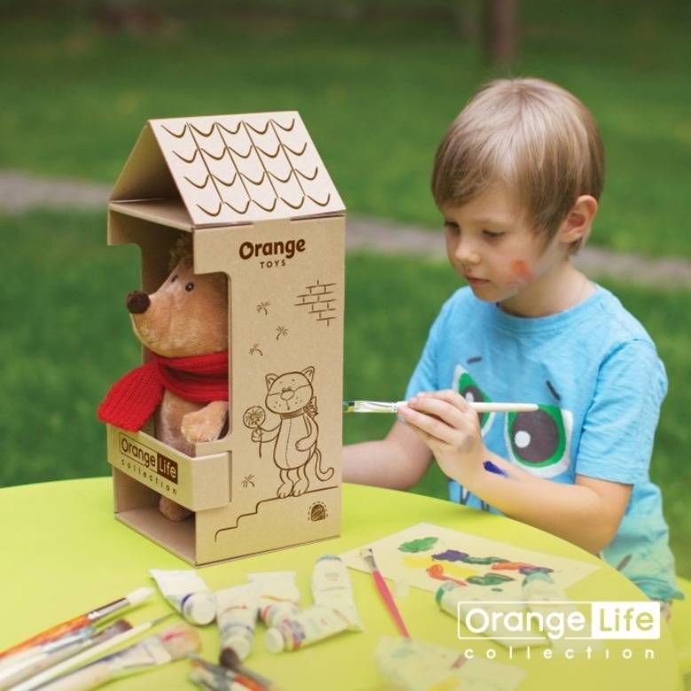 Každý plyšák z kolekcie Orange Life je zabalený v papierovom boxe, ktorý sa dá poskladať do tvaru domčeka a môžete si ho vyfarbiť podľa svojej fantázie